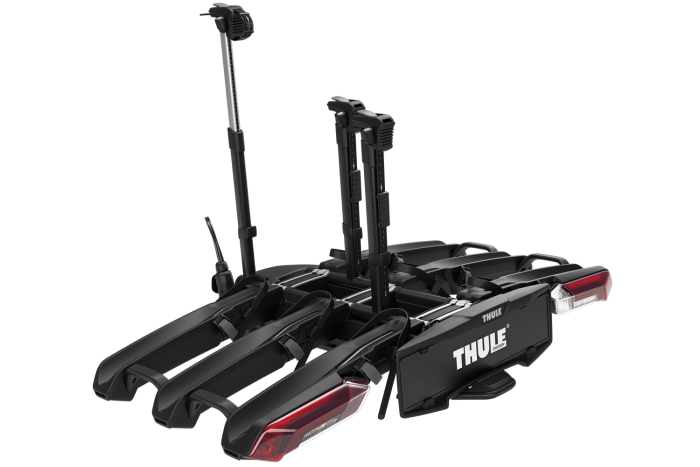 A patented telescopic mounting arm means either the frame or rear wheel of a bike can be clamped and, very niftily, the rack’s tilting action provides sufficient clearance to access the boot when it’s loaded, even with heavy e-bikes. £880, thule.com