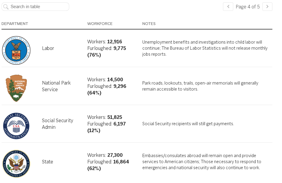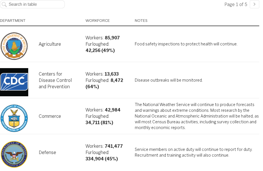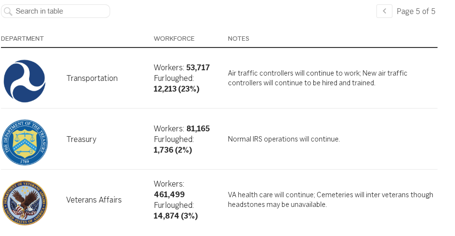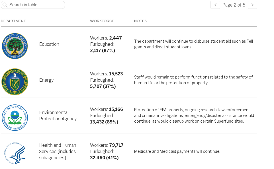 Shutdown impact on federal agencies