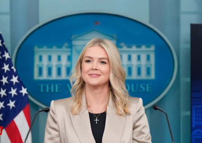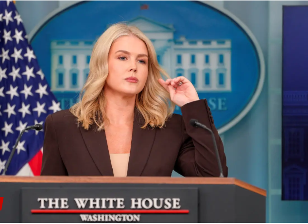 Karoline Leavitt addresses reporters outside the White House on October 16, 2025. AP
