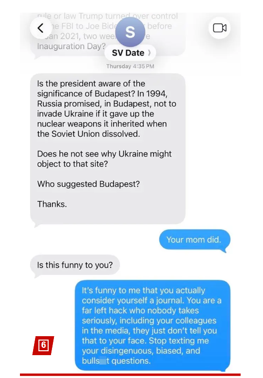 “Stop texting me your disingenuous, biased, and bulls–t questions.”
