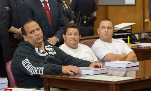 From left, alleged mobsters Anthony Santoro (‘Skinny’), Vito Badamo, and Ernest Aiello faced the court for their arraignment. New York Post