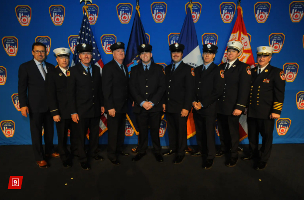 Patrick Brady (center) comes from a family of firefighters: his brothers Jimmy and Brian, his cousin Pete, and his uncle Pete are all either active or retired, Mayor Eric Adams said. FDNY