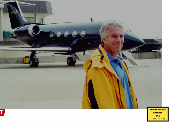 Jeffrey Epstein stands before his private jet, a symbol of his lavish—and infamous—lifestyle. DOJ