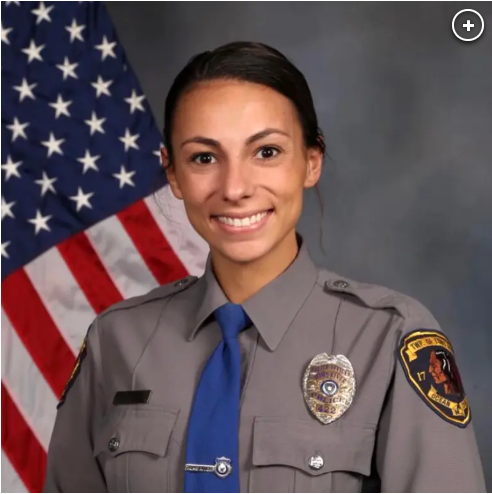 The off-duty officer—who had lived with her ex-boyfriend for five years—got into an argument with the couple before shoving and pushing them both.