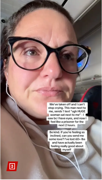 One woman on a Delta Air Lines flight began crying quietly in her seat after noticing the person next to her fire off a message, grumbling about being stuck beside a "HUGE woman.” tiktok.com/@soberspouse
